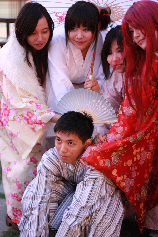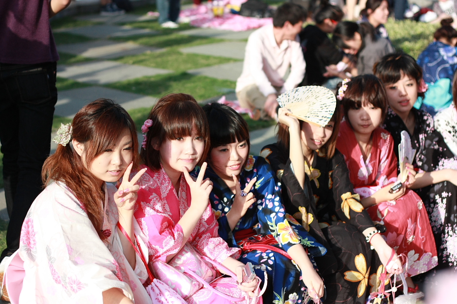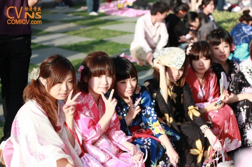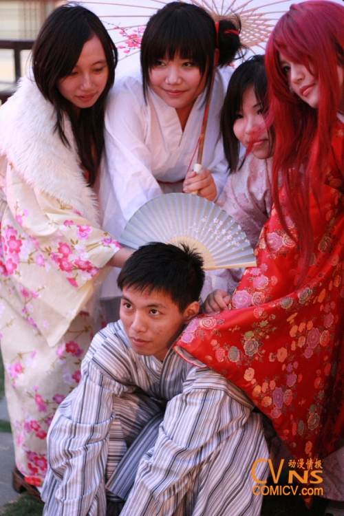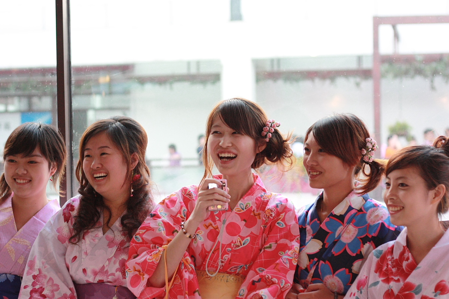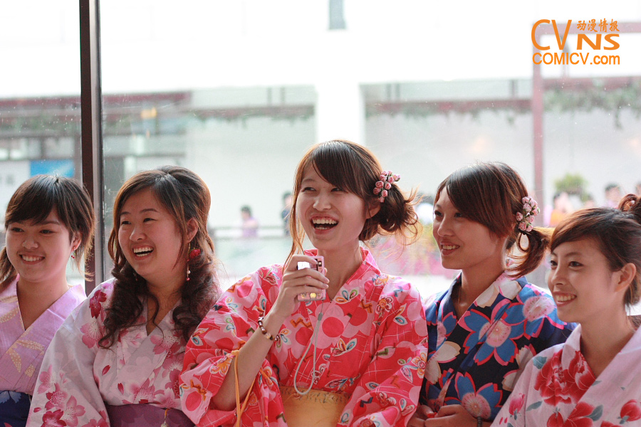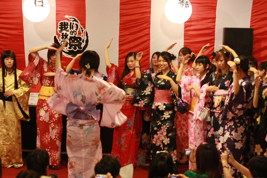 2008年10月11日,走进城隍庙一家餐厅顶楼,满目穿着和服的姑娘,以为来到了日本,其实,这是沪上一家名叫幸福合作社的社团模仿日本庙会举行的沪上“秋日祭”。