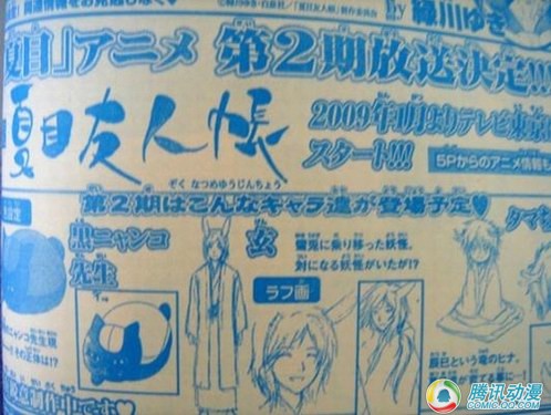 本消息是在白泉社的月刊《LaLa》11月号上公布的,TV动画《夏目友人帐》是今年7月的新番,下周将播出第13话最终话,对于这样一部难得的感人作品,短短的13话当然无法满足观众,于是官方也是顺势决定将推出第二季(也许是预谋已久也未可知)。第二季的名字是《续 夏目友人帐》,予定于2009年1月在TV东京播出。