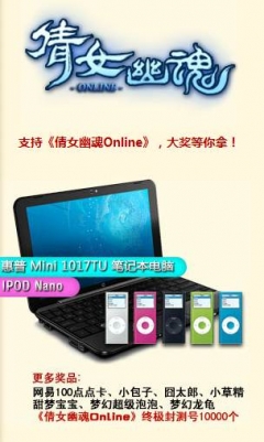 投票支持《倩女幽魂Online》,就有机会获得终极封测金牌激活码、笔记本电脑、数码相机、网易一卡通等。为倩女投票,做测试先锋!