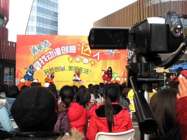 下午2点不到,近千游客和动漫爱好者已将现场围得水泄不通,不少是此前通过网络参加比赛的学生带着亲朋“全家都来赛”。幸好主办方组织得当,现场秩序良好。在“我是小小设计师”区域,游客进行自由创作,为美年达瓶身涂鸦,设计潮爆T恤;在“宅男宅女大变身”区域,专业的化妆师、服装造型师把游客塑造成自己最中意的动漫明星造型,实际体验一把COSPLAY的魅力;舞台区除了精彩动漫表演外,还有专业的COSPLAY舞蹈老师现场进行动漫歌曲的舞蹈培训,让大家充分感受一把“舞林大会”的激情魅力。