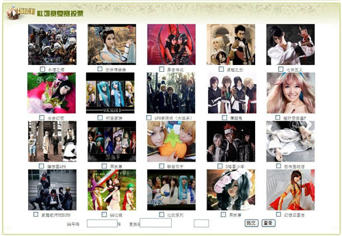 个人组:2010 ChinaJoy Cover Coser封面大赛迎来了更多实力强劲的优秀选手的积极参与,每周的优秀选手的评选都成为艰难的抉择,最后一轮周优秀选手更是惊现“死亡之组”。在评选入围作品期间,众评委在以前期产生的周优秀和推荐选手会作为参考信息的前提下,考虑到提交作品时间先后及票数的因素,为保证进入复赛的都是本次最有实力的选手,也为了让所有Cosplay爱好者在复赛中看到本届比赛中最有爱的图,众评委不辞辛苦的又将数千份作品重新审核,讨论评选,最后评选出了本届54名入围的个人选手作品。。