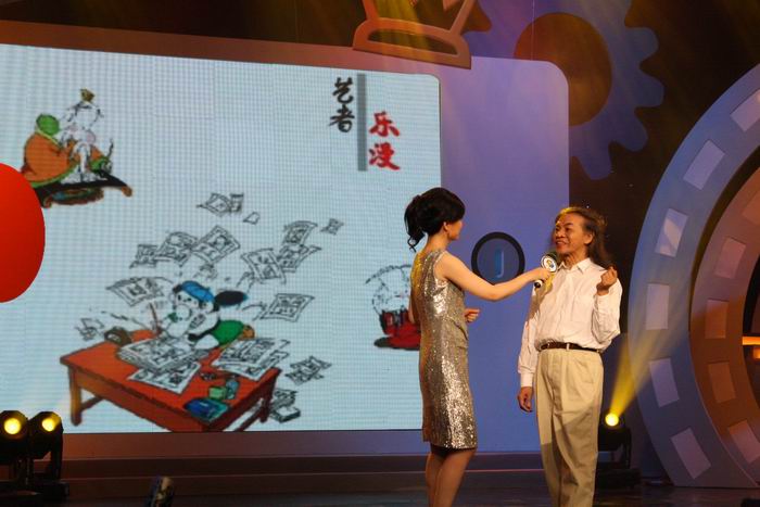 盛典现场不但蔡志忠、姚非拉、夏达等动漫明星齐聚,更有影视娱乐明星强势助阵——“唐老鸭”李扬与SMG当家花旦陈蓉的联袂主持,快男陈楚生、鞠萍姐姐、奥运幕后小歌手杨沛宜等大小明星的出场都让现场星光熠熠气氛火爆,当然所有星光中最耀眼的还是“星爷”——周星驰的登场让人既欣喜又意外,自称超级漫迷的星爷携《长江七号》动画版来沪宣传,认为动漫不但有娱乐功效还能表达环保理念,能起到很好的教育作用。