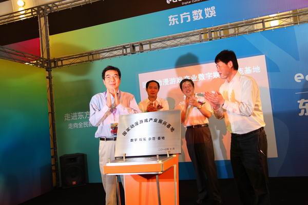 在精彩的动漫人偶表演之后,各位领导为“CCG EXPO第六届中国国际动漫游戏博览会暨2010卡通总动员”剪彩,2010 CCG EXPO正式开幕。之后各位领导饶有兴致地参观展会,并见证了国家动漫游戏产业数字娱乐示范基地的揭牌仪式。