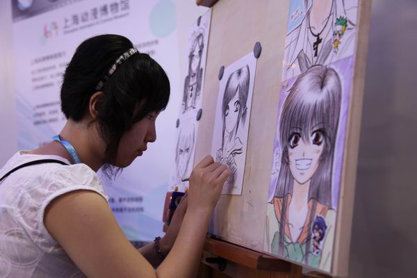 上海动漫博物馆展台的现场作画,与前辈们比试比试