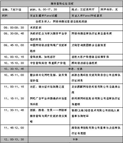 目前,本届中国游戏商务大会(CGBC)各论坛日程安排已基本确定,总日程详见: http://www.chinagbc.com.cn/Meeting_hyrc.aspx