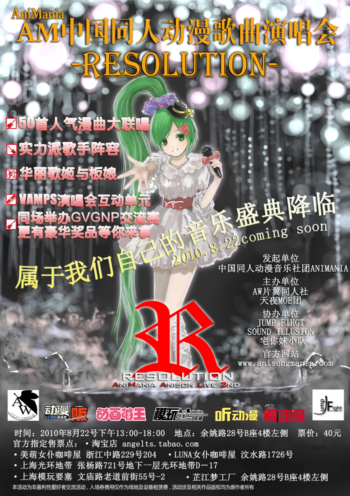 《AM中国同人动漫歌曲演唱会——RESOLUTION》 将于2010年8月22日正式登陆上海