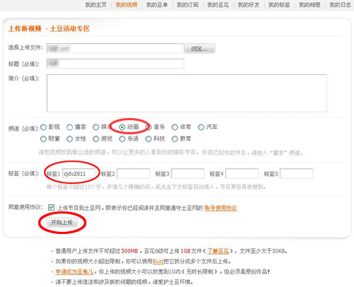 ¡¡¡¡5.Ñ¡Ôñ"¶¯»"ƵµÀ£¬ÎªÊÓÆµÌí¼Ó"cjdv2011"±êÇ©£¬¿ªÊ¼ÉÏ´«ÊÓÆµ