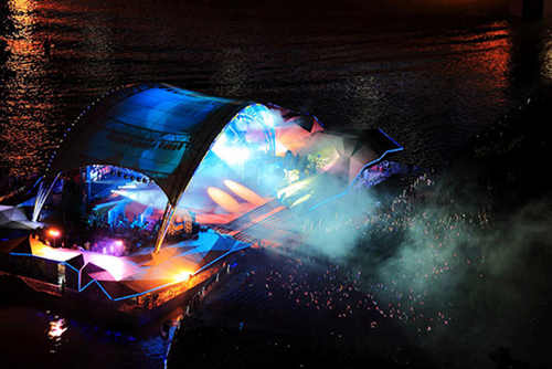 2011 ChinaJoy Cosplay嘉年华广西赛区的舞台——柳江明珠,是世界目前最大的水上浮动大舞台,位于“百里柳江,百里画卷”的柳江河畔,柳州市核心区域。舞台上设置有高约7.5米,长约17米的大型LED显示屏,弧形顶棚钢架上,共安装了48套投光灯、16套旋转电脑灯,舞台两侧还设置了22套成像灯和4套投影灯,这些灯光设备除了能营造出霓彩纷呈的舞美效果外,还能根据演出需要打出不同的画面和字幕,设施完善的化妆间、休息室。长达7个月的争取过程,终于如愿在水上大舞台安家,舞台效果值得期待!