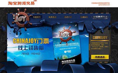 之前,在6月14日召开的ChinaJoy、CGBC、CGDC、CGOC联合新闻发布会上,曾有记者提问售票问题,组委会曾表示今年将尝试网络售票。而6月25日一早,淘宝网首页核心位置就出现了大幅ChinaJoy主题的曝光,并有“不排队,有门票!”字样的描述。虽然是周末,也引起了业界不小的关注,历届ChinaJoy最煎熬的经历莫过于顶着炎炎烈日排队购票了,而今年有望足不出户买门票,着实方便不少。