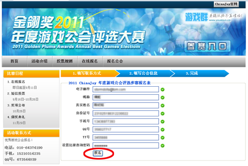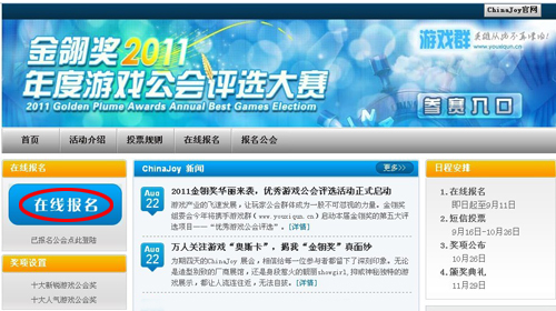 1.进入活动官网后(http://cj.youxiqun.cn/),点击页面左上角的“在线报名”,即可进入报名环节。