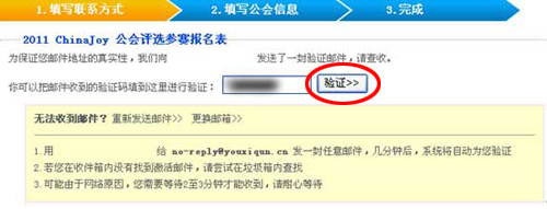 3.邮箱验证。提交报名后,需要去您填写的邮箱查收邮件,需点击相关邮件链接激活,复制验证码进行验证,即可完成个人信息填写,进入公会报名提交。
