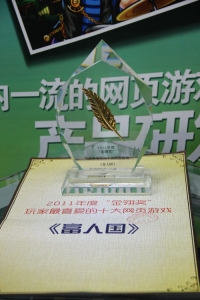 笑傲金翎 《富人国》获最受玩家喜爱页游奖