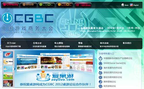 2012年7月28日,ChinaJoy十周年之际,在上海浦东嘉里大酒店三层浦东厅,ChinaJoy组委会将联合协办单位国内专业桌游媒体爱桌游网(www.zoyooo.com)共同承办CGBC 2012桌面游戏论坛,邀请国内外企业代表,一同推动绿色桌游文化,大力发展绿色健康桌游运动。
