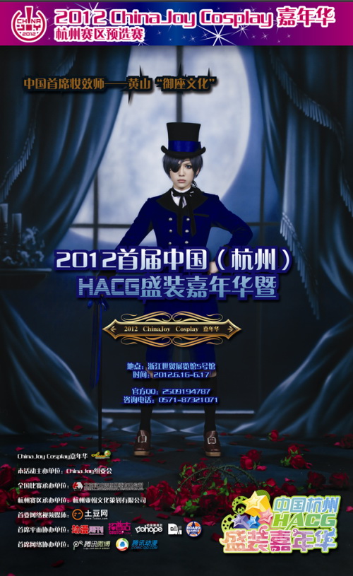 ChinaJoy Cosplay嘉年华杭州赛区暨2012首届中国(杭州)HACG盛装嘉年华预选赛正式启动啦。作为本届ChinaJoy Cosplay嘉年华新设的赛区,可以说是让众人期盼已久,众多Cosplay团队终于有了在主场为荣誉而战的机会。本次比赛嘉宾阵容也是空前绝后,中国首席动漫装效师、人形师——黄山就是其中之一。其余重量级嘉宾我们将在以后的相关报道中陆续透露给大家。 同一时间ChinaJoy Cosplay嘉年华福建赛区预选赛也将启动。届时优胜者将与各路浙闽Cosplay精英团队齐聚杭州进行最后的决战。