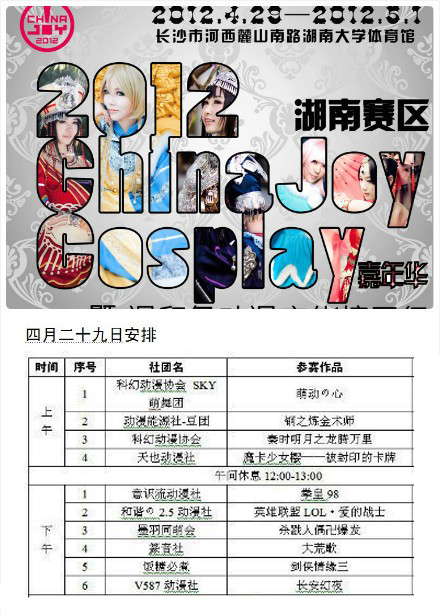 比赛名称:2012 ChinaJoy Cosplay嘉年华湖南赛区预选赛暨漫印象动漫文化校园行