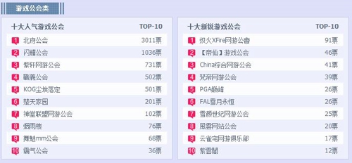 游戏公会类“十大人气游戏公会”的竞争同样异常火爆,而“十大新锐游戏公会”中炽火XFire网游公?目前也让我们看到了他们的努力。