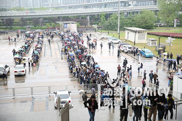 欣慰的是,爱好者的热情给主办方鼓足了气势。8点半左右,在NPC的带领下,进场队伍已经在雨中井井有条的形成(辛苦大家啦!)