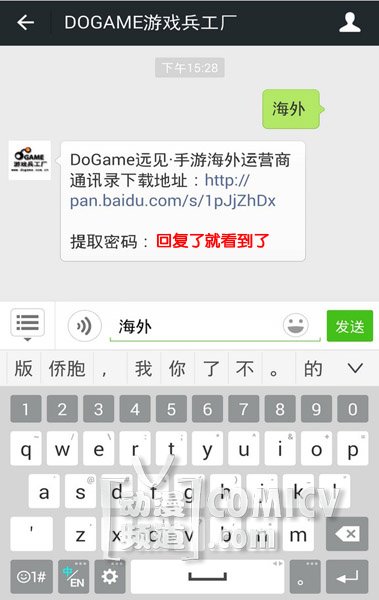 2. 关注微信公众号(dogamechn)回复关键字“ 海外 ”获取通讯录下载