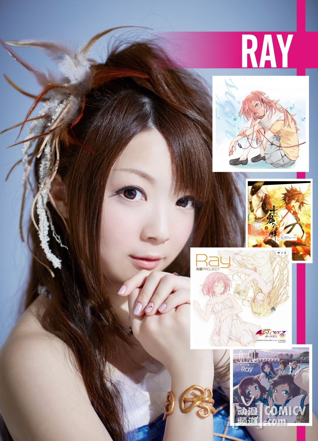 1990出生的Ray自幼时便开始学习唱歌,2012年演唱《在盛夏等待》的OP《sign》出道,游戏《十鬼之绊~关原奇谭~》的两首主题曲“契―この?い?い、时空を越えて?”和“谵言?沈みゆく私の?”让她声名鹊起,这两首歌由黑崎真音作词,Ray的演唱可爱而清新,让人过耳不忘。