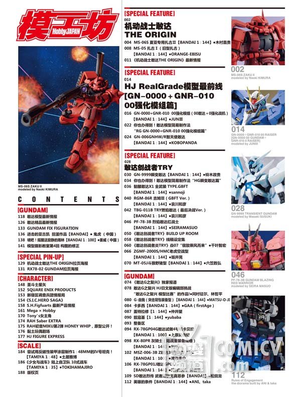 《模工坊》四周年零一个月,热情持续升温中,每天都能收到厚厚的一摞读者调查表,小编表示心情无比激动,敢达创战者TRY完结,新的故事随之开始,UC党们的春天再次到来!机动战士敢达THE ORIGIN再次将独眼巨人推向第一线。00最新RG力作的登场也为年轻的玩家们带来了不少诚意满满的内容。本期可谓是老少皆宜,居家旅行必备!