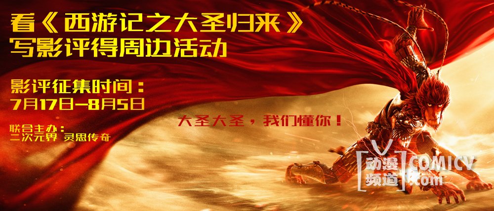 不会写影评怎么办?注册二次元界论坛http://bbs.2ciyuanjie.com,并发布本条消息到新浪微博同时@西游记之大圣归来、@二次元界,活动主办将在7月18日—8月6日,每天抽取5名幸运者(20天,共计100名),赠送大圣钥匙链或大圣钥匙牌。获奖名单在二次元界新浪官方微博上发布。