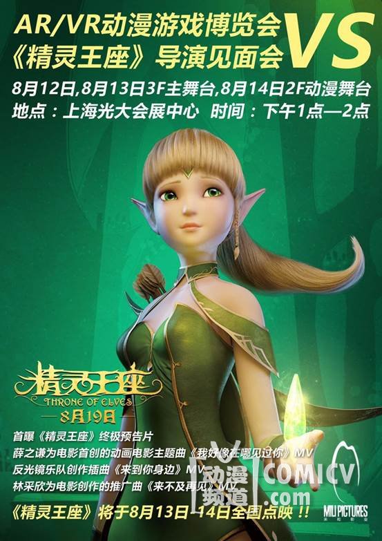 将于8月12日、8月13日3F主舞台、8月14日2F动漫舞台连续举办3天(地点:上海光大会展中心。3天活动时间都为下午1点—2点)。8月13日、14日《精灵王座》在全国举行点映。