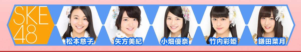 日本当红偶像组合,48家族的SKE48成员造访!松本慈子、矢方美纪、小?优奈、竹内彩姬、镰田菜月携手前来,五位人气偶像将为国内粉丝上演特别演出!