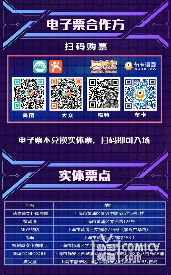 如通过美团/大众、喵特、布卡、QQ钱包购买预售电子票,则无需兑换实体票,扫码直接入场!!心动不如行动,赶快来购票吧!