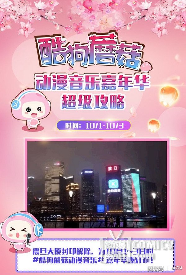 继解锁上海著名地标震旦大厦LED屏,酷狗蘑菇音乐、酷狗音乐几个大字在黄浦江边闪着耀眼光芒后,酷狗蘑菇X萤火虫动漫音乐嘉年华和酷狗蘑菇国风动漫音乐玩唱会的超级攻略也出炉了!