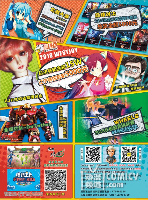 2018 west joy 中国 COSPLAY--Top榜辽宁区决赛、宅舞大赛、黑慕王者荣耀争霸赛、wheels长板挑战赛等专业赛事安排,更有万元总奖金等你来拿!心动不如行动!