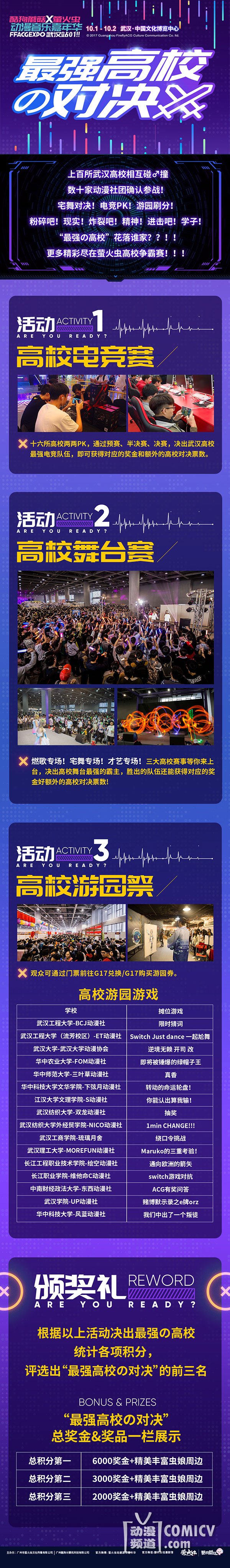 武汉·最强高校对决赛!十六支队伍一同角逐最强电竞队伍!高校舞台赛在互动舞台等你来参与!更有数十家动漫社团与你一同玩转高校游园祭!