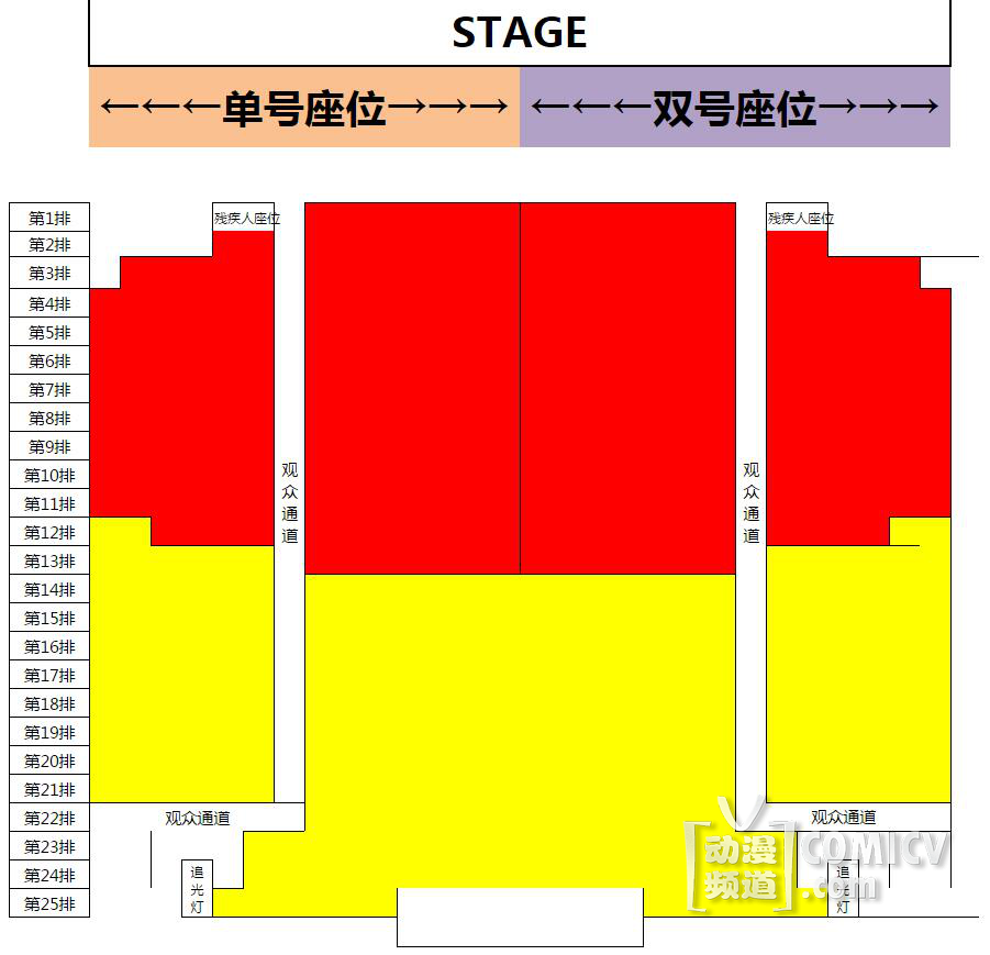 2、座位图说明,双号座位分配给bilibili及其他渠道;单号座位分配给麽多。