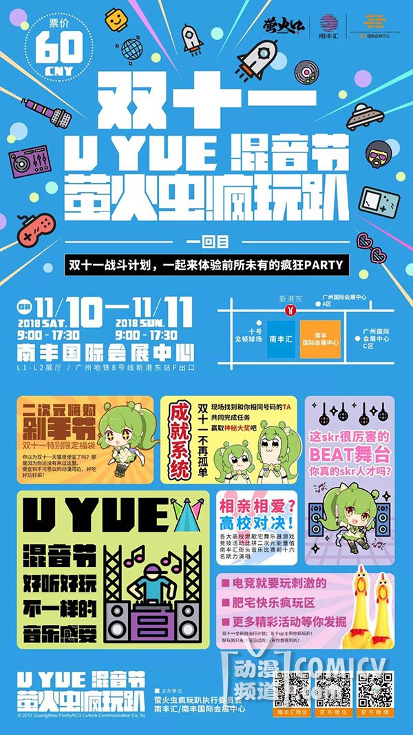 11月10日-11日,南丰汇国际会展中心,双十一UYUE混音节萤火虫疯玩趴火热来袭!全明星阵容今·日·大·公·开!双十一战斗计划启动,这场战斗缺你不可!赶紧的,剁手嗨购走起!