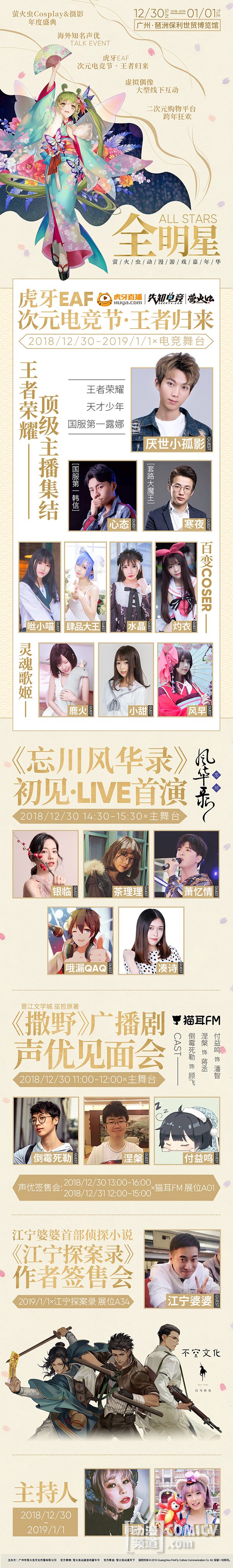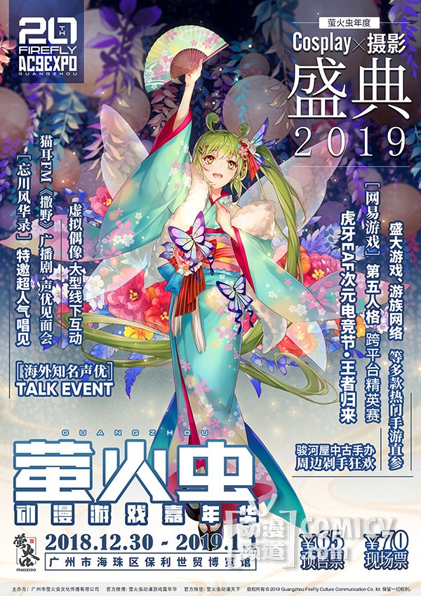 2018年12月30日-2019年1月1日,广州保利世贸博览馆5、6号馆,第20届萤火虫动漫游戏嘉年华火热筹备中!众多重磅新企划为你的2019带来新气象!